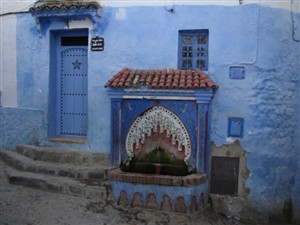 trasferiti in mattinata a Chefchaouen attraversando paesaggio svizzero, la citta é tutta azzurra, sembra greca.