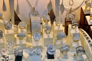 Uno sberluscente saluto da Anversa, capitale mondiale del taglio dei diamanti: "brilloni" come se piovesse, nelle vetrine della graziosa città.