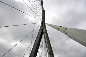 Passeggiata sul ponte di Normandia, sull'estuario della Senna fra Le Havre e Honfleur. 18-19 gradi, coperto.