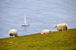 Qui nel Donegal vantano le scogliere più alte d'Europa. Pecore merinos dappertutto. nuvole incombenti, pioviggina e ci sono e 14 °C!