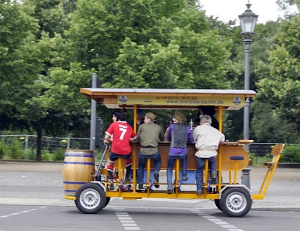 Questi a Berlino (ex est) pedalano "sotto i tigli" - "unter den linden" - spingendo il loro Birra-ciclo.