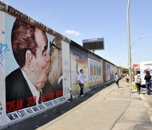La East Gallery, sulla Sprea, dove 1,3 km di muro sono stati decorati dieci anni fa da decine di artisti internazionali. finalmente un po' di tempo ok!