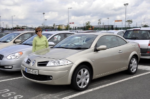 Siamo arrivati alla fine del viaggio: saluti da Howth, un promontorio sopraelevato di fronte a Dublino (pieno di belle ville) a dieci minuti dall'aeroporto. Partenza prevista del volo per Berlino: 17:40. Sono le 15 passate: quando e dove andiamo a bucare una gomma? Qui in città, ovviamente, dopo tutti 'sti chilometri di stradine disastrate. E sopratutto con pochissimo tempo per provvedere alla riparazione (non c'è ruota di scorta, nella Mégane cabrio di cui siamo stati dotati). Meno male che il kit di gonfiaggio e vulcanizzazione funziona subito e senza problemi.