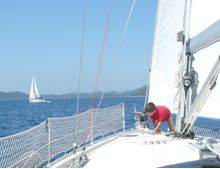 traversata del Quarnaro di bolina con bora a 20 nodi, una goduria, peccato per Maracol piena come un uovo. Prevista notte a vegliare l'ancoraggio su 14mt