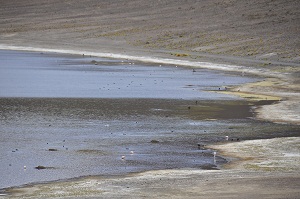 Siamo al centro del Salar de Atacama, nella riserva dei fenicotteri. Sotto ai piedi abbiamo uno strato di sale spesso da 1,5 a 5 km (a seconda delle fonti locali...) e attorno solo vulcani e picchi andini.