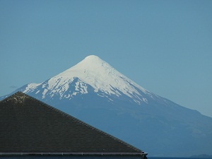 A San Carlos e' riapparsa una spessa nube di cenere proveniente dal vulcano, e le previsioni delle linee aeree adesso sono affidabili come quelle del lotto. (Quando la visibilita' e' buona, invece, il Tronador e' splendido... questa e' una vista di ieri, dal lato cileno)