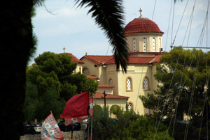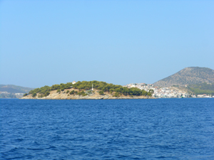 Abbiamo lasciato Poros alla volta di Aigina, sole e niente vento, il mare è una tavola blu