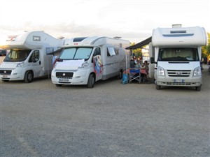 siamo parcheggiati sulla spiaggia di Piemanson alla foce del fiume Rodano! Passeremo qua la notte insieme a centinaia di altri camper, roulotte e tende. Tira un venti molto forte, bho si starà a vedere!!!!!