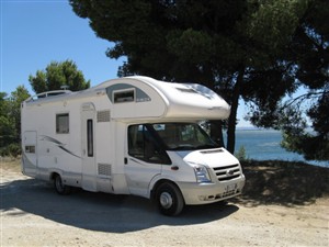 Sosta per pranzo in parcheggio panoramico sotto l' ombra dei pini, in riva al mare prima della cittadina di Saint Chamas