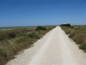 Escursione al faro di La Gacholle in mezzo alle paludi della Camargue viaggiando per 4 km su una lingua di terra circondata da acqua delle lagune!