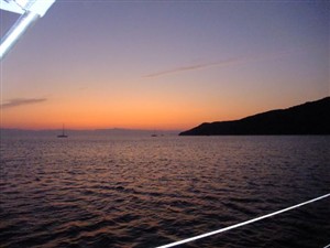 ormeggiamo al buio in una caletta bellissima al profumo dei pini. Adesso si riposa.+tardi colazione e bagni.