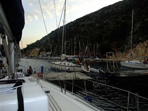 arrivati a kassiopi troviamo posto di prua ma c'è un caldo opprimente, era meglio la baia, ma se stasera vogliamo la feta, ci tocca!