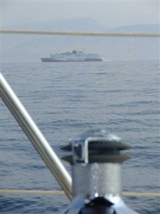 Il traghetto con i fuggiaschi ci sorpassa e noi avanziamo con il (poco) vento giusto sul naso
