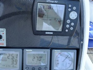 Il traghetto con i fuggiaschi ci sorpassa e noi avanziamo con il (poco) vento giusto sul naso :-( ma va bene così. E ancora lunga.