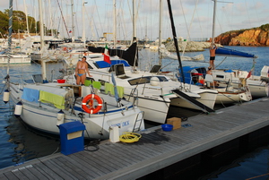 Dopo aver preso alla grande la nostra prima sventolata seria, abbiamo raggiunto Lavandou cotti dal sole ed asciugati dal Mistral. X oggi ormeggio all'accoglienza della capitaneria, domani speriamo di trovare un posto regolare x lasciar passare il vento.