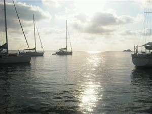 All'ancora a Palau. Calma di vento e umidita', cosi' in cielo come in terra.