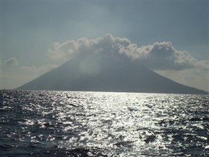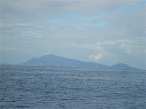 Rotta 320 siamo quasi al traverso di stromboli siamo a motore poco vento e di prua i delfini sono venuti a salutare