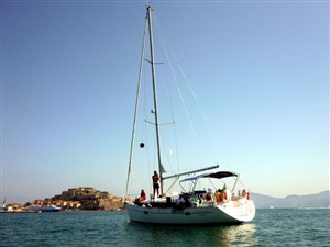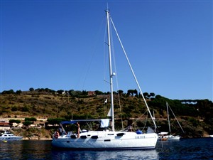 Oggi percorso brevissimo ma rigorosamente a vela. Infatti partendo da Marina di Campo ci siamo ancorati nell’adiacente golfo di Lacona sempre all’Elba. Inizialmente il vento da sud creava onda e conseguenti disagi, poi quando ha cambiato direzione le cose sono gradualmente migliorate.