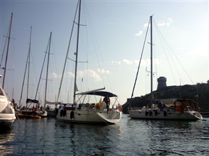 Siamo ancorati nella rada di Portoferraio tra il Circolo